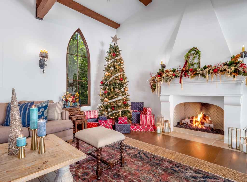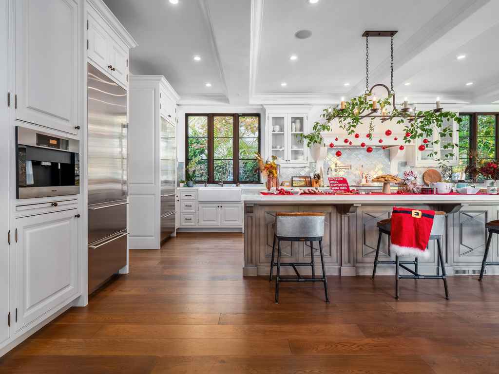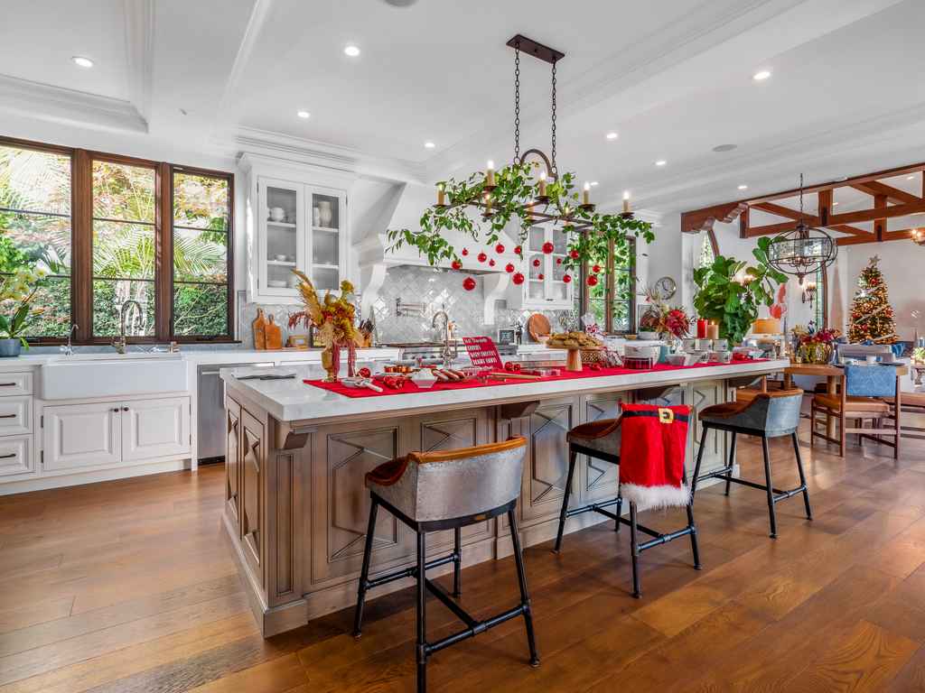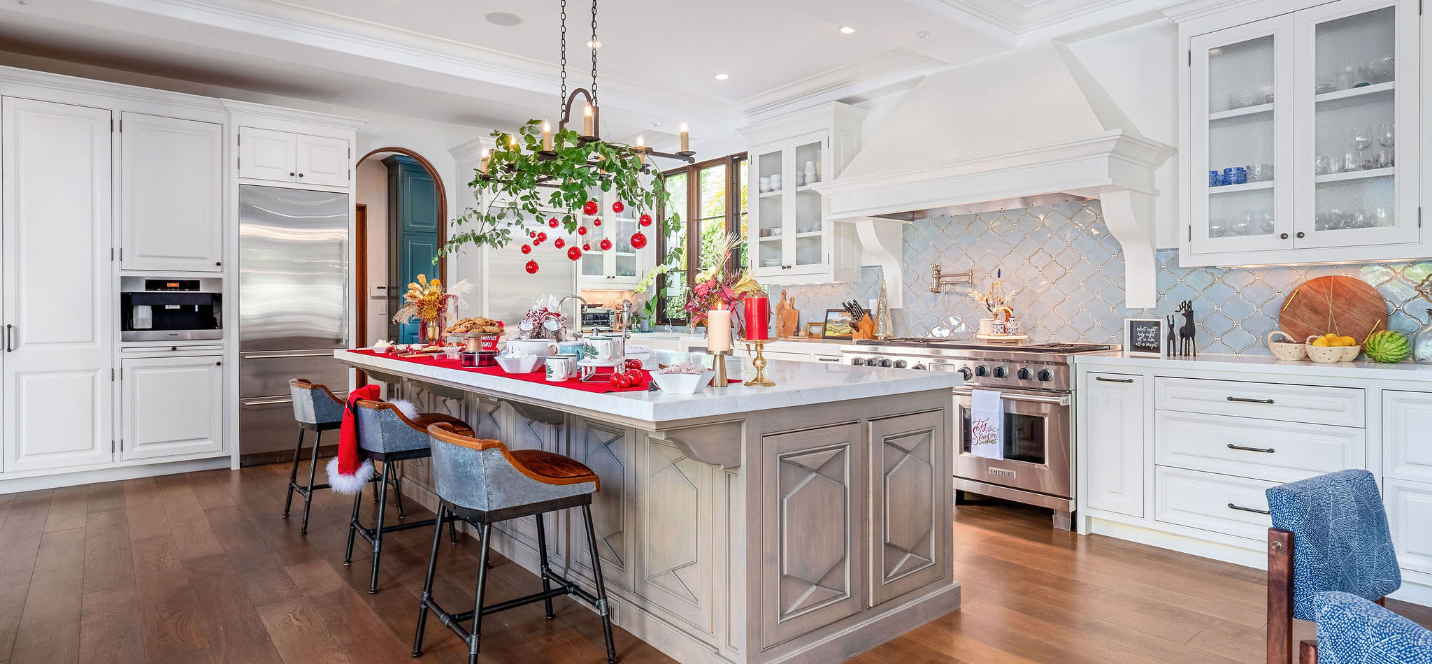 Kari Dirkson of Feathered Arrow Events decorated the home for the holidays in elegant jewel tones and styled a cozy hot chocolate bar in the kitchen.