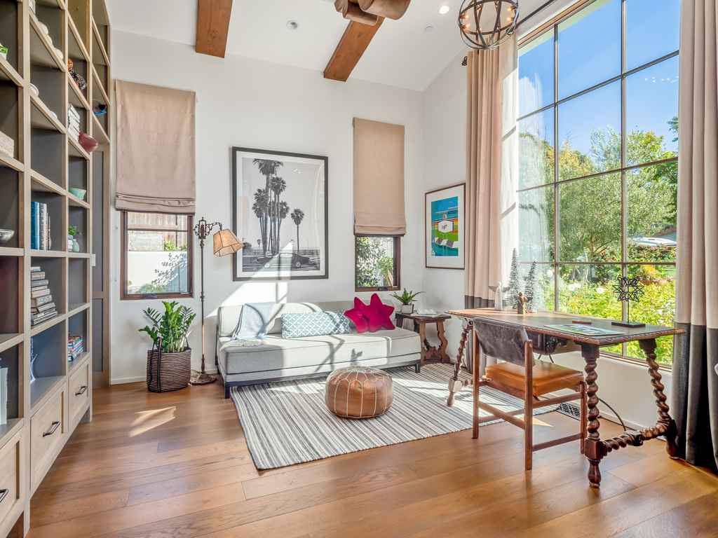Walking down the Mediterranean tree lined walkway to the home, you enter through classic Spanish motif doors to a two story foyer. On the ground floor, you find an office, two bathrooms, formal dining room, mudroom, kitchen, family room, and playroom.