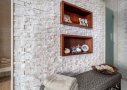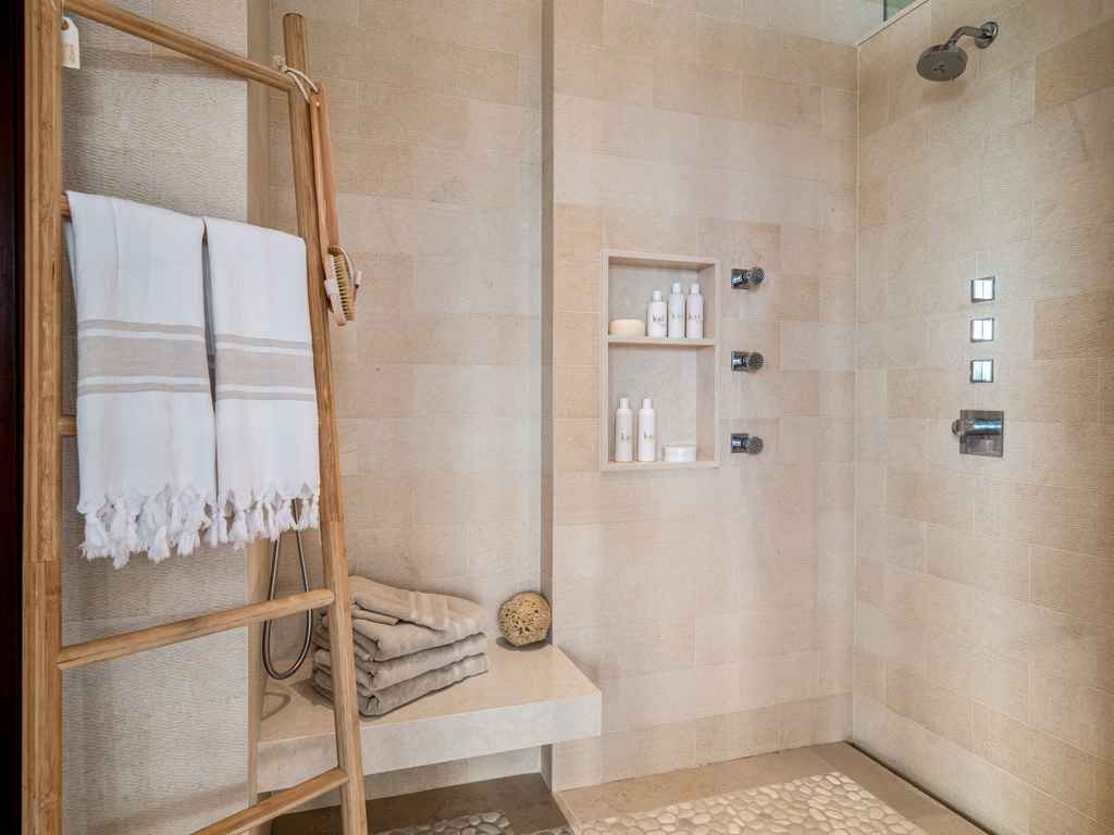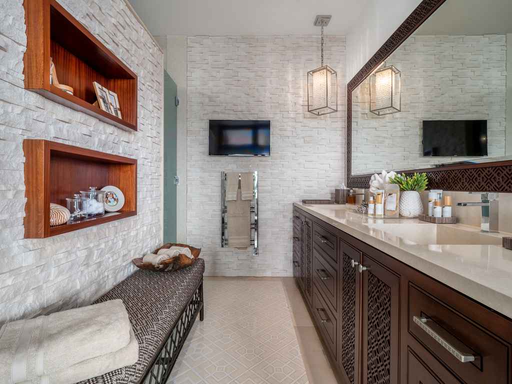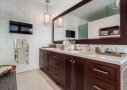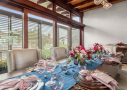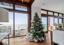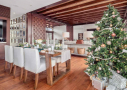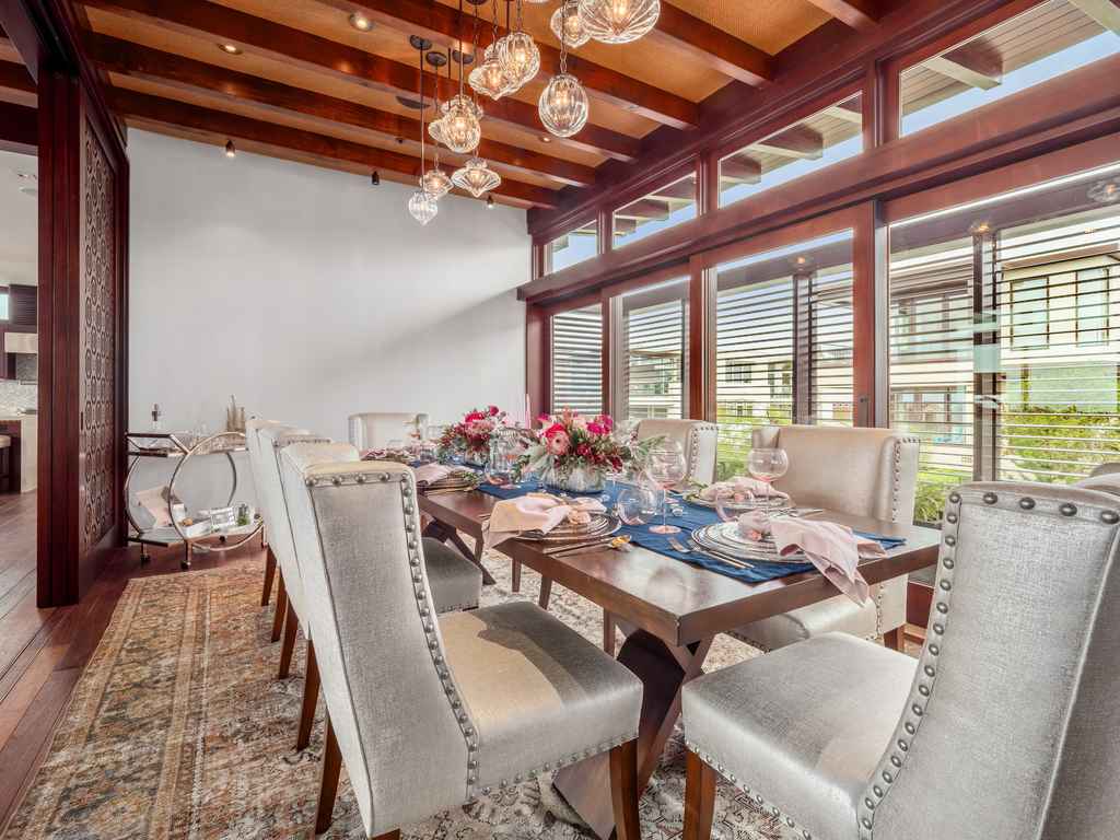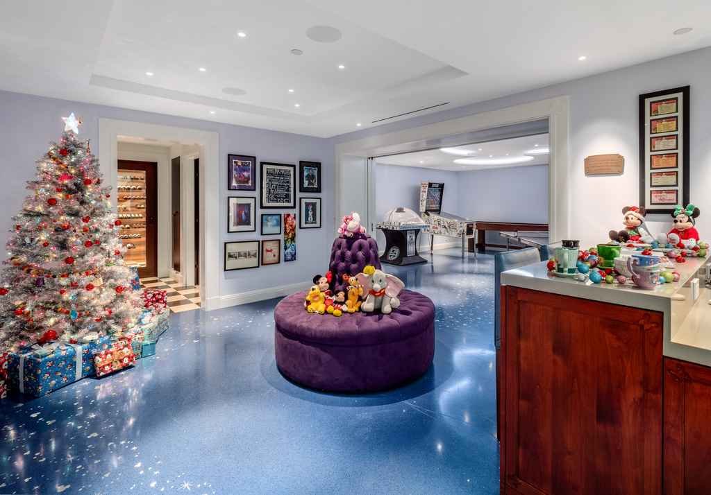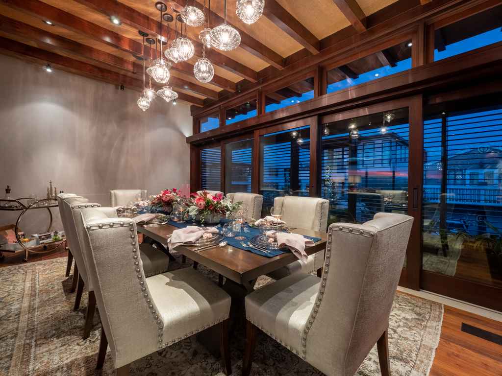 A Chrismukkah theme carries throughout the house, incorporating the traditions of both Christmas and Hanukkah, and the home is brought to life by Caroline Burke’s interior design, Maison Luxe’s styling and Feathered Arrow Events’ festive creativity. Deep Roots Garden Center supplements this decorative vision with custom floral arrangements throughout the property and organizational dreams come true with the work of Life in Jeneral. This corner lot beauty exudes one of the best curbside appeals on the block. Prepare to be transported to a tranquil resort as you enter the contemporary pivot door of this magnificent home.
